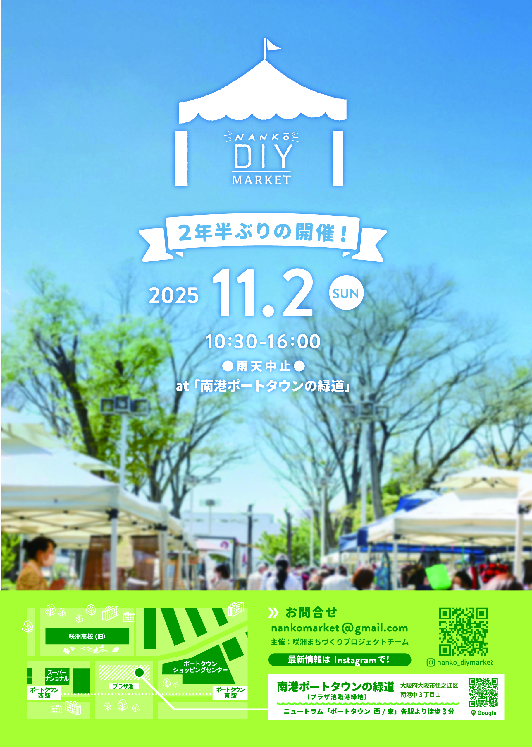 南港で約2年7か月ぶりに開催される「NANKO DIY MARKET」に、社会福祉法人しらなみが出店いたします。