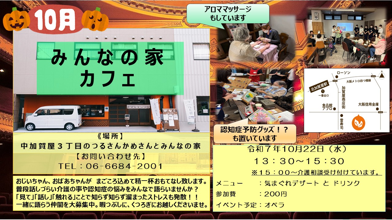 10月度の『みんなの家カフェ』お知らせです!