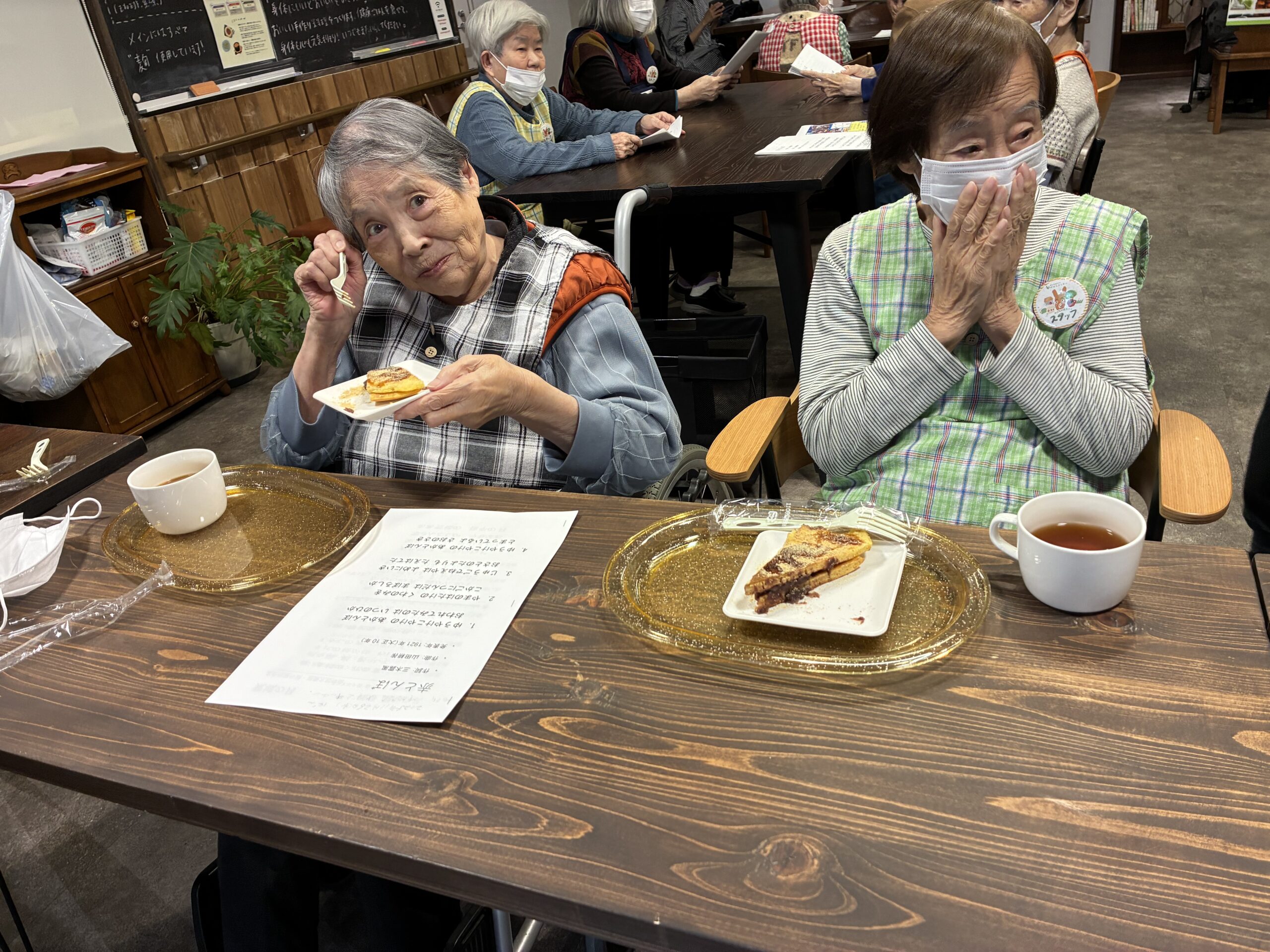 今回はどら焼きが軽食です!盛り付け担当の入居者様のお二人!📷