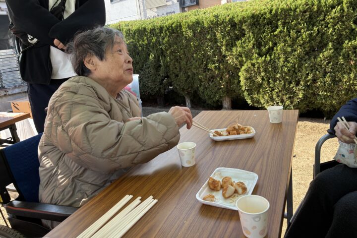 「お餅なんて普段めったに食べられへんから嬉しいわぁ」「その大きいのが食べたい!」「みんな一生懸命に餅ついてるわ」と楽しい雰囲気で過ごすことができました☺️