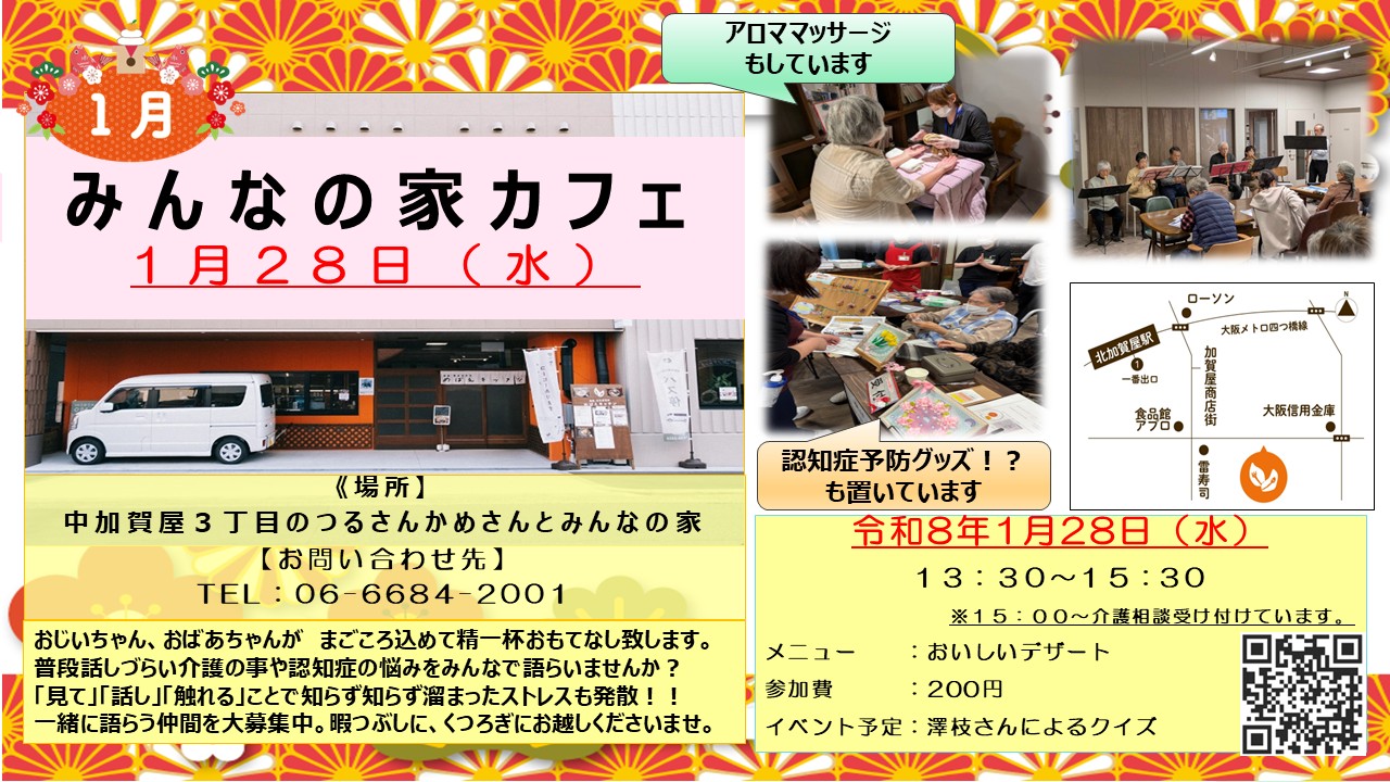 1月度の『みんなの家カフェ』お知らせです!